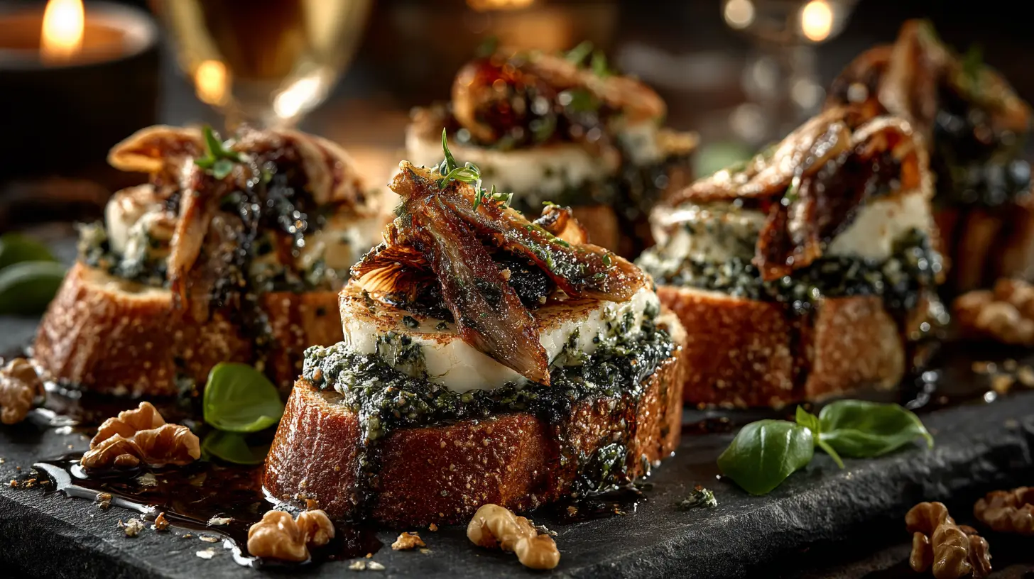 Italienische Tradition trifft auf raffinierte Aromen. Das selbstgemachte Walnusspesto mit Kapern und Basilikum verleiht dieser Bruschetta-Variation eine besondere Tiefe, während der cremige Mozzarella und die würzigen Sardellenfilets für einen harmonischen Abschluss sorgen.
